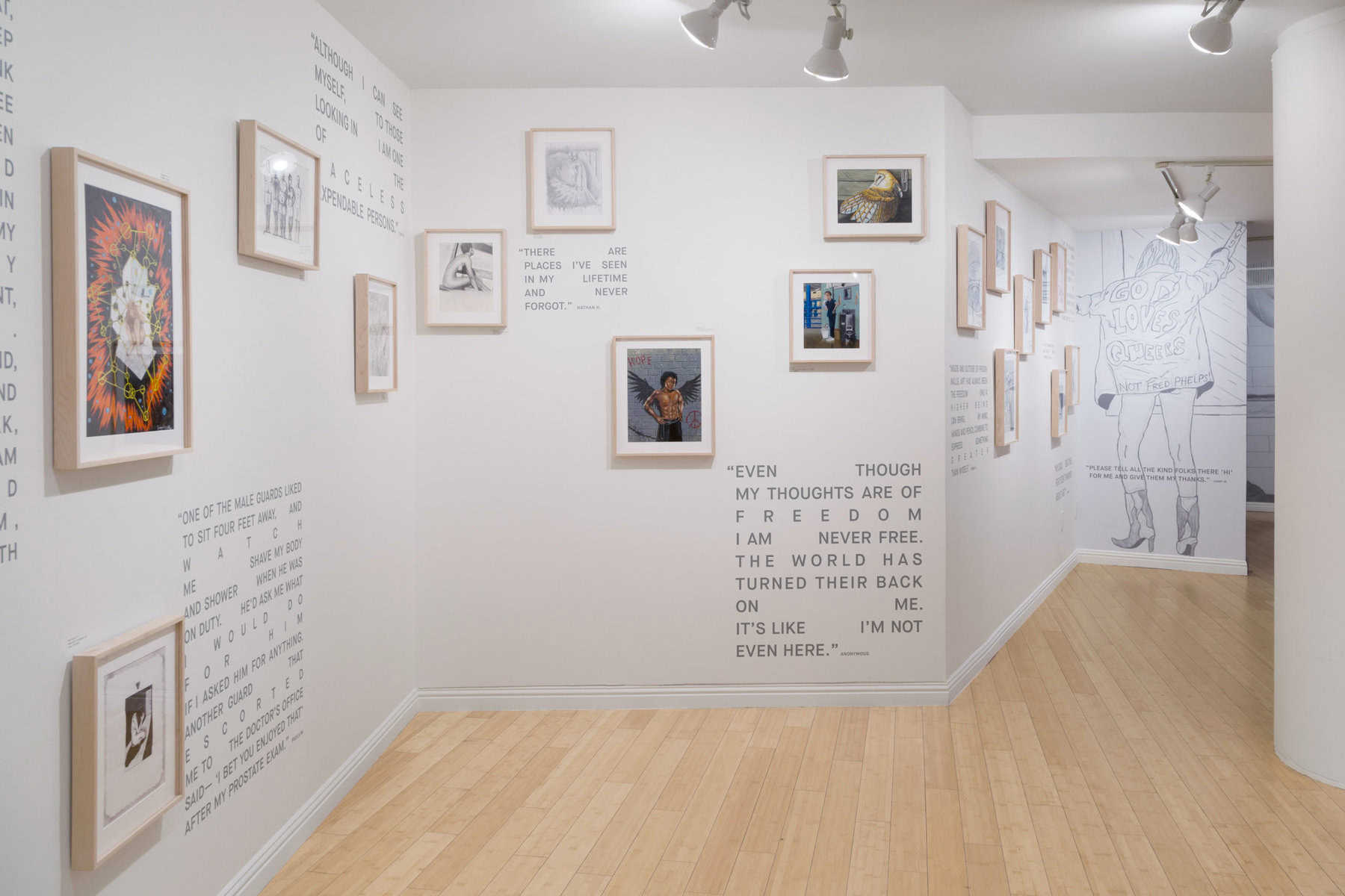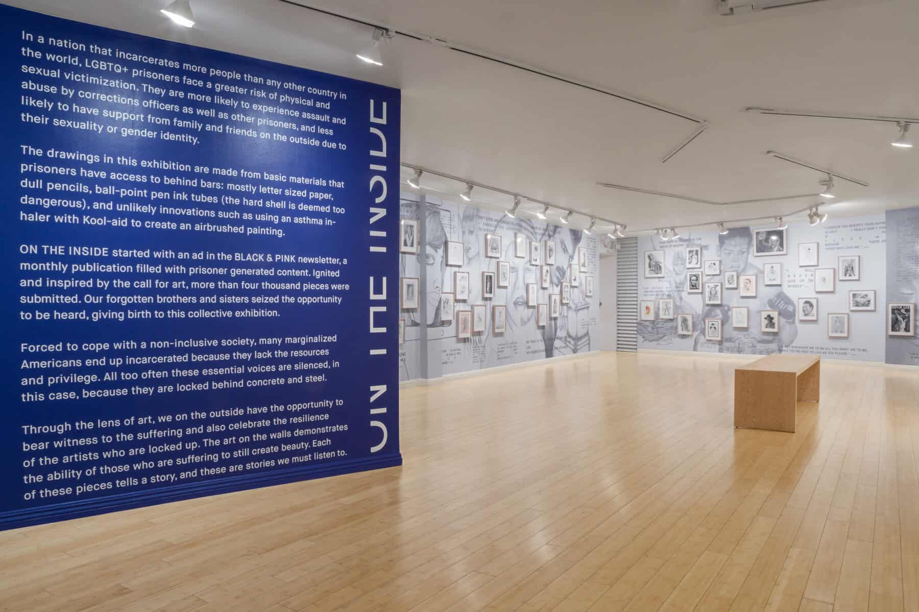 In a nation that incarcerates more people than any other country in the world, LGBTQ+ prisoners face a greater risk of physical and sexual victimization. They are more likely to experience assault and abuse by corrections officers as well as other prisoners, and less likely to have support from family and friends on the outside due to their sexuality or gender identity. For an incarcerated LGBTQ+ person, corresponding with someone on a regular basis is itself a harm reduction strategy, giving that person a support network outside of prison. To this end, On The Inside has created a channel of communication allowing audience members to share their experience, thoughts, and feedback with each individual artist, via a texting and transcribing service created specifically for the exhibition.