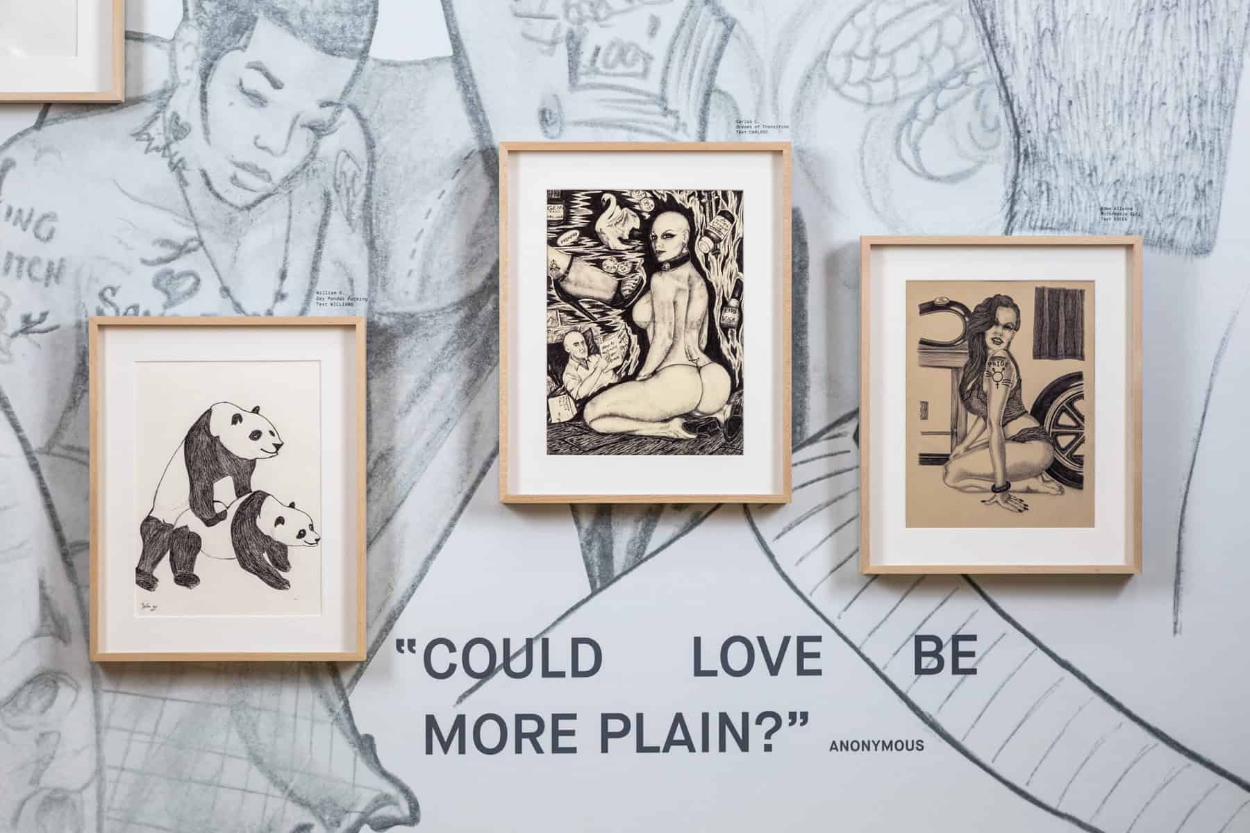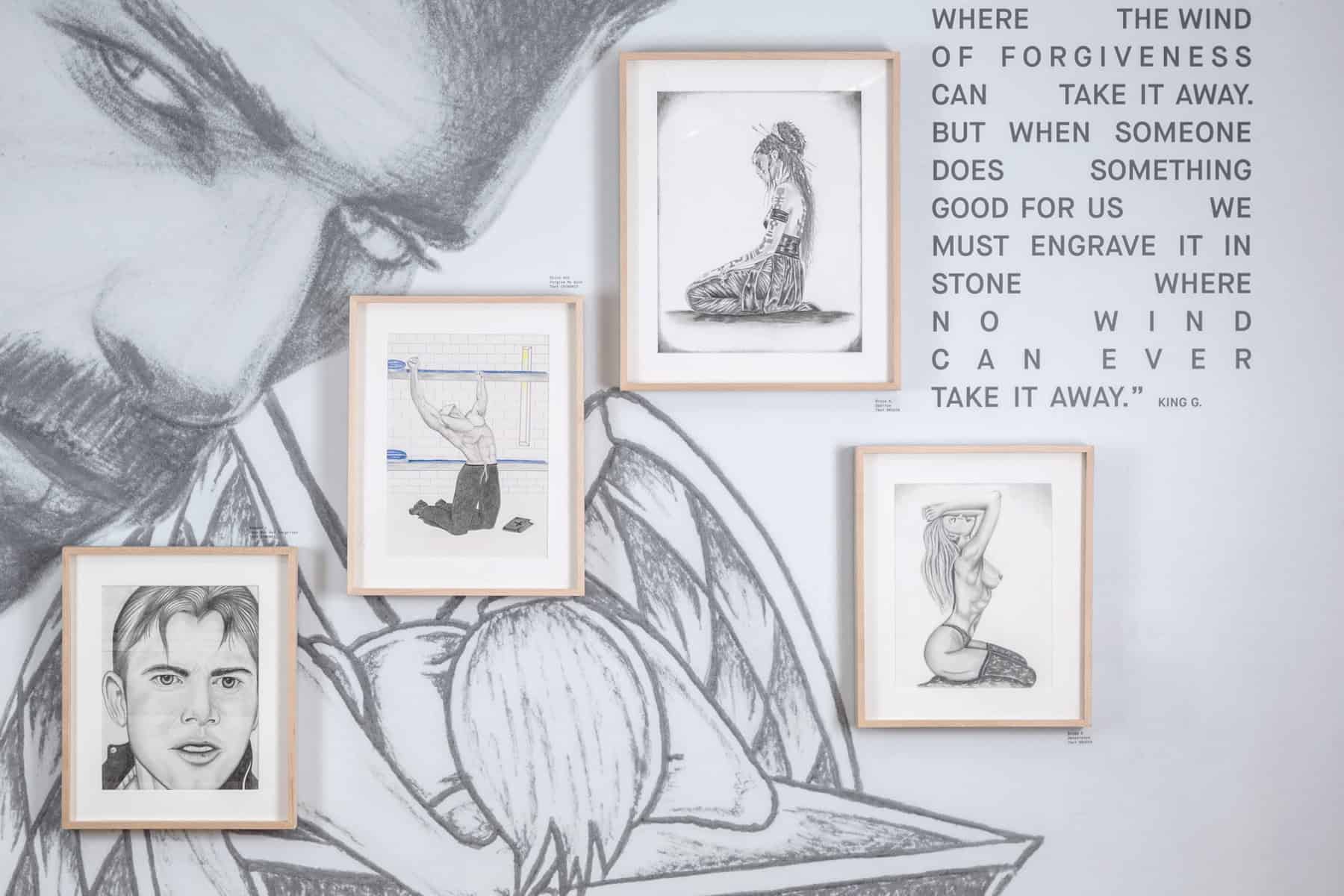 On the Inside is a group show of LGBTQ+ artists who are currently incarcerated. The art is made from basic materials the prisoners have access to behind bars: mostly letter-sized paper, dull pencils, ball-point pen ink tubes (the hard shell is deemed too dangerous), and unlikely innovations such as using an asthma inhaler with Kool-aid to create an air brushed painting.