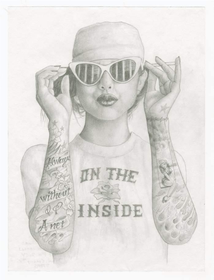 On the Inside makes the individual and collective statement that identity and sense of self is valuable and worth claiming. This is amplified in the context of prison, where access to identity affirming clothes, makeup, and hair is denied. Many of the portraits are drawn on the back of forms, print outs, and scrap paper generated by the facility. The act of taking a document covered in rules and regulations and turning it into an expression of self is a powerful act. It is a refusal to passively accept institutionalization; to defy it with inventive and skillful self-expression.