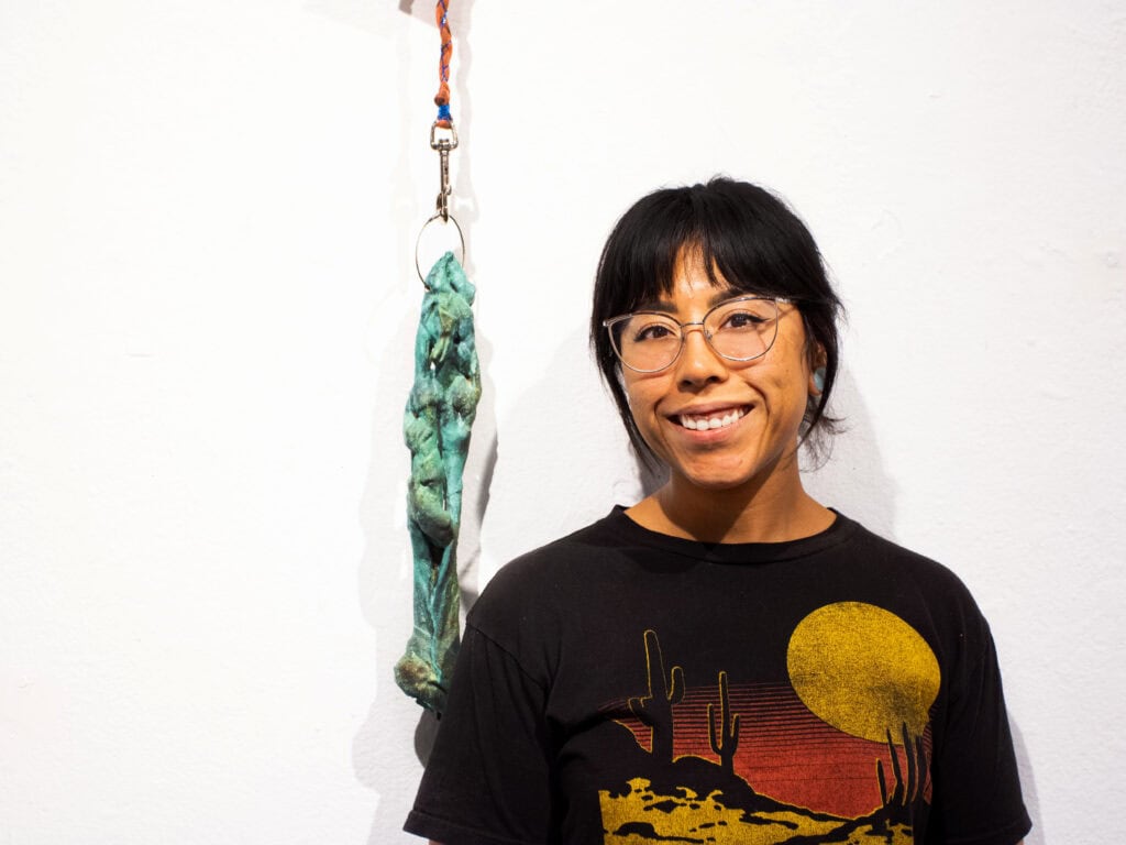 Melora Garcia is an interdisciplinary artist working between the Coachella Valley and Los Angeles. Garcia’s work takes shape through sculpture, ceramics, photography, mixed media collage and painting. Garcia has a dual BA in Visual Studies and Studio Art from CSU San Bernardino (2019) and an MFA in Sculpture from CSU Northridge (2023). Using traditional craft processes and material experimentation, Garcia creates a visual diary through the gradual layering of familial, found, and constructed objects. Reimagining indigeneity through the interweaving of personal narratives with cultural traditions, Garcia attempts to preserve memories through her art practice.