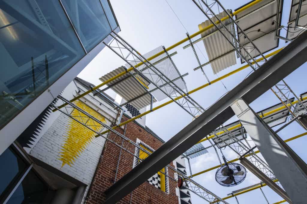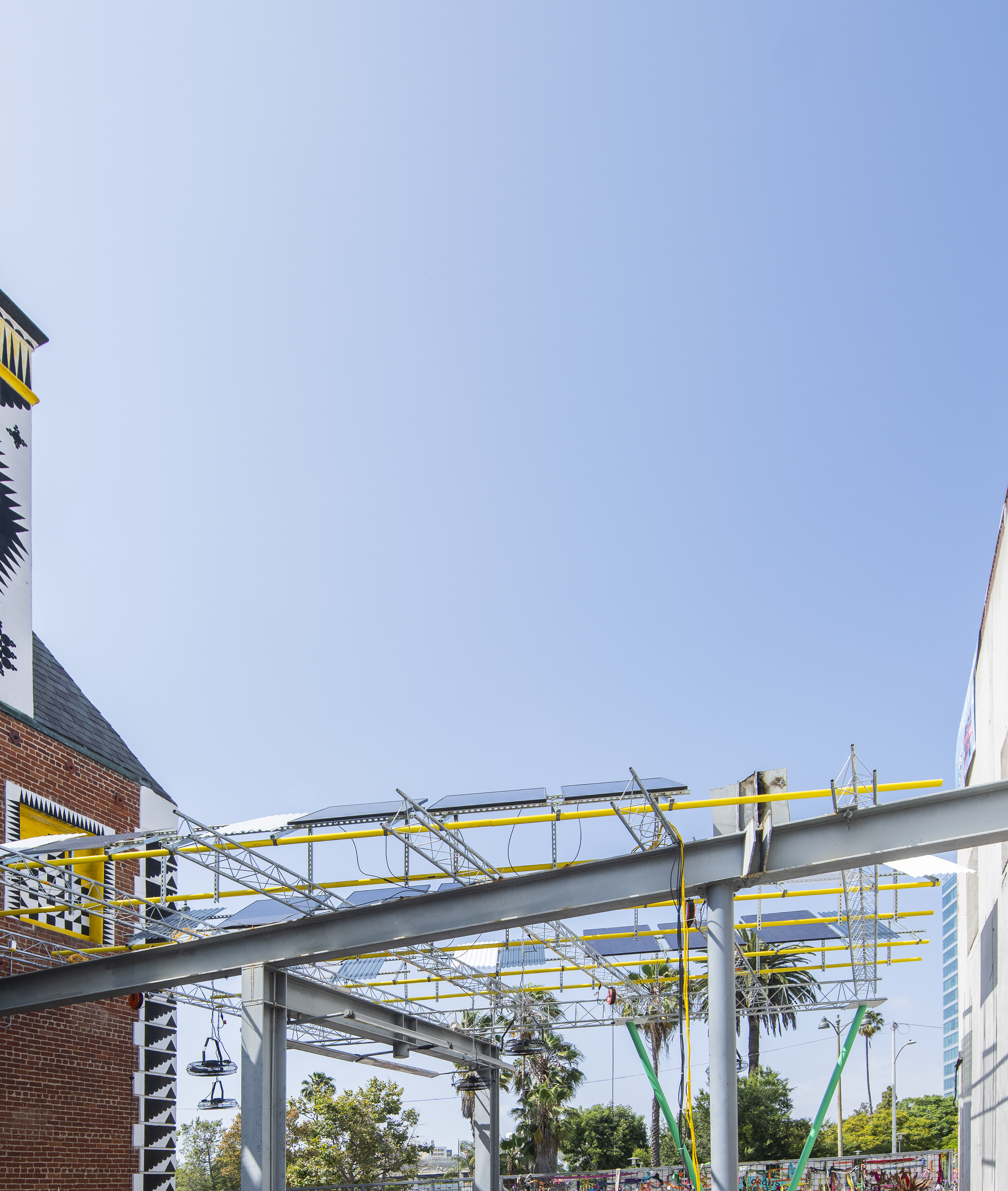 Commissioned and produced by Materials & Applications, Light Gauge is an architectural installation by the international design and research practice Departamento del Distrito that will function as a zone of performance, encounter, and cooling, mediated by two photovoltaic space frames that levitate above the Craft Contemporary Courtyard. Informed by adaptable industrial systems and network thinking, this temporary intervention will address questions surrounding energy and infrastructure in Los Angeles, exploring the policies, technologies, and architectures that enable self-determination.