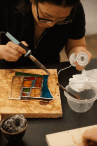 In this hands-on stained-glass workshop, we’ll explore the art of creating vibrant pieces from recycled glass, breathing new life into discarded materials. Learn to assemble, and fuse glass into dynamic designs with bold shapes, vibrant colors, and unique textures! No prior experience is required.