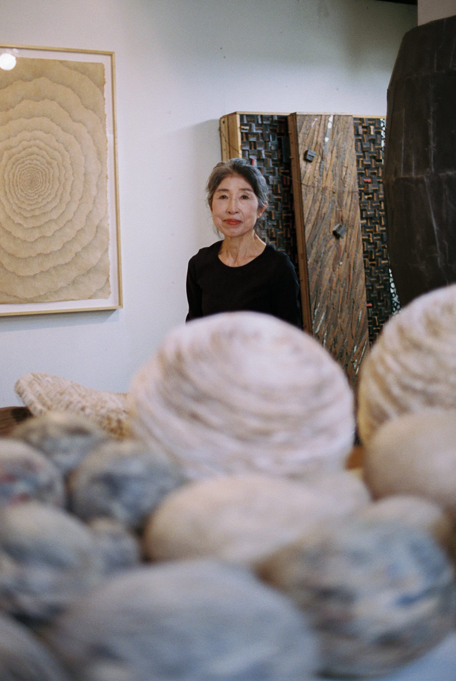 For over 30 years, Echiko Ohira has created a vast body of work using repurposed paper, thread, and nails. Ohira’s initial experiments with paper referenced her own body and the pain she endured from a back injury. As her pain diminished, Ohira’s practice unfolded to encompass broader themes within the natural and spiritual world.